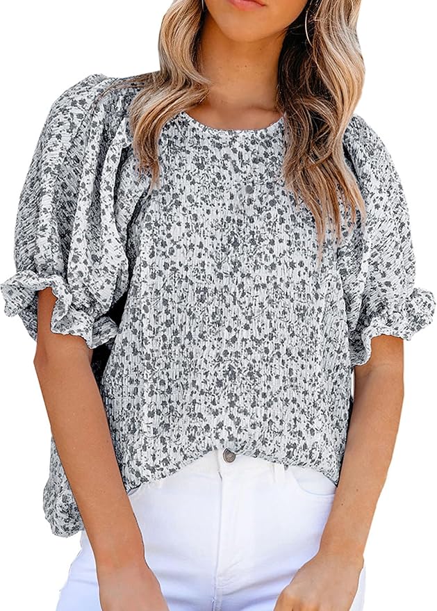 UNIQUE DESIGN---puff sleeve / short sleeve / floral print / crewneck / ruffle hem sleeve / babydoll / casual / soft / lightweight / loose fit